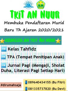 Berikan lingkungan yang baik untuk putra putri kita yaa ayah bunda. Dengan menyekolahkan putra putri ayah bunda ke TKIT AN-Nuur. Insyaallah kami memberikan yang terbaik.
